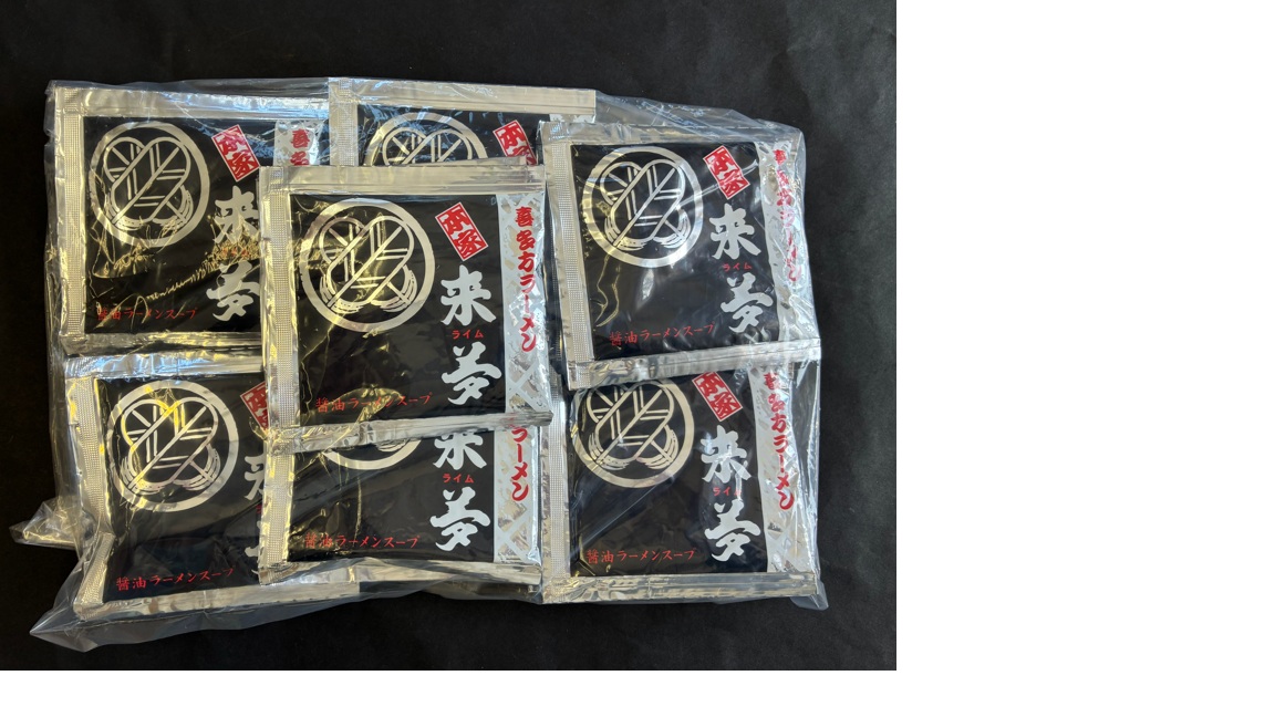 数量限定!数量限定!無くなり次第終了いたします。来夢オリジナルスープの賞味期限が 味噌スープ2026年7月15日正油スープ2026年9月21日 と限定されている訳アリ商品です。来夢 オリジナルスープを20袋入りでお求めやすく購入出来るようにしました。1袋 70円 とお買い得商品です!お料理の隠し味や、ご自宅で召し上がる際のラーメンのスープに当社のオリジナルスープをご活用いただけると幸いです。美味しいのでこの機会に是非、お試しください。60サイズ(2セットまで)・常温商品。 期間限定! 来夢オリジナルスープ20袋入り ツイートする シェアする 販売価格: 1,400円(税込み) 会員価格 (税込み) 通常価格 (税込み) 在庫 ○ 商品コード JANコード スープ種類選択 味噌20袋 正油20袋 数量 - + カートに入れる カテゴリー 期間限定・数量限定 訳アリ商品